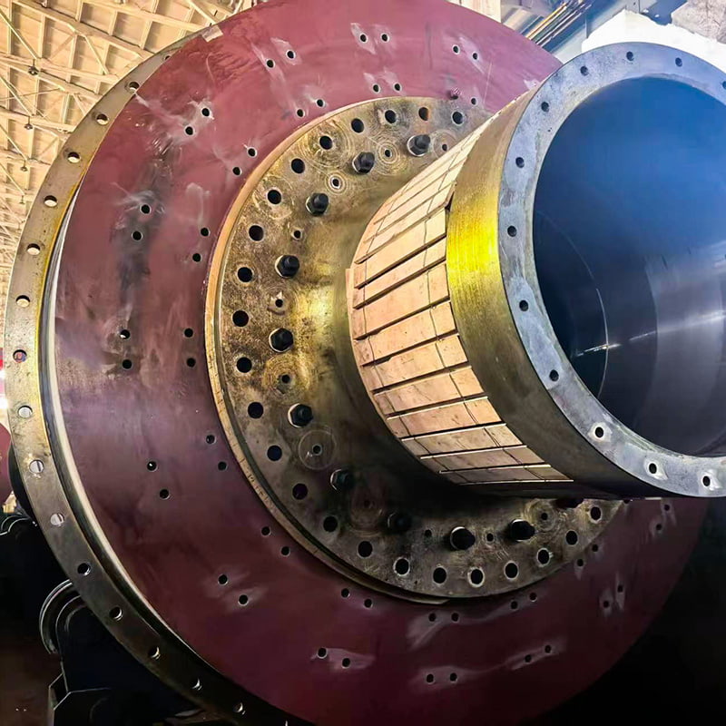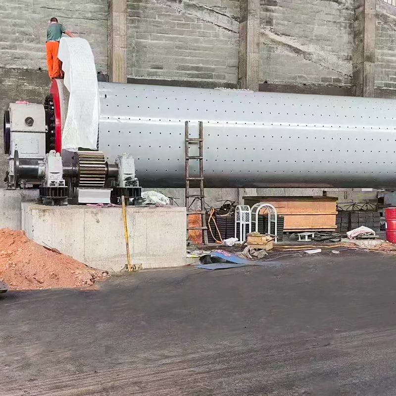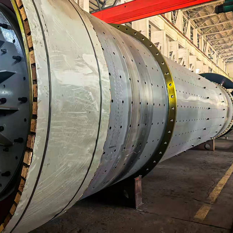 材料通过进料部分和入口部分进入气缸。圆柱体中的研磨介质(钢球/陶瓷球)随材料旋转,产生离心力。当介质被提升到一定高度时,它会因重力而落下。研磨介质对材料的冲击和磨损使其粉碎。然后,粉碎的材料在进料水和冲洗水的驱动下通过排出口排出,完成研磨过程。球磨机由进料段、出料段、旋转段、传动段(减速器、小型传动齿轮、电机、电子控制装置)组成。空心轴为铸钢,内衬可拆卸。大型旋转齿轮由铸件滚压而成。气缸内衬耐磨衬里,耐磨性极佳。该机器运行平稳、可靠。